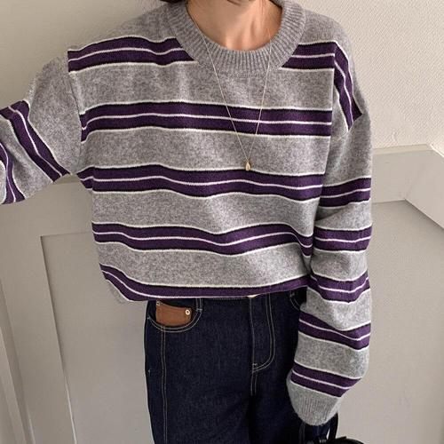 [다잇템][다잇템] 여자 콘트라스트 줄무늬 라글란 라운드니트 빨간니트 가디건_23918267_588872