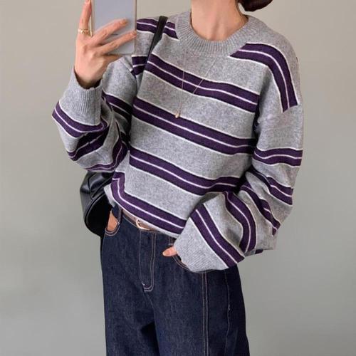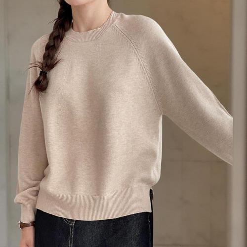 SELEAD 봄 가을 여성용 프렌치 스타일 오버핏따뜻한 니트 고급 허리 라인 루즈핏 라운드넥 니트 스웨터 니트 니트