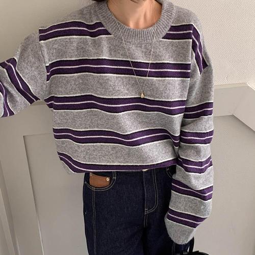 여자 박스 빨간 줄무늬 콘트라스트 럭비티 니트