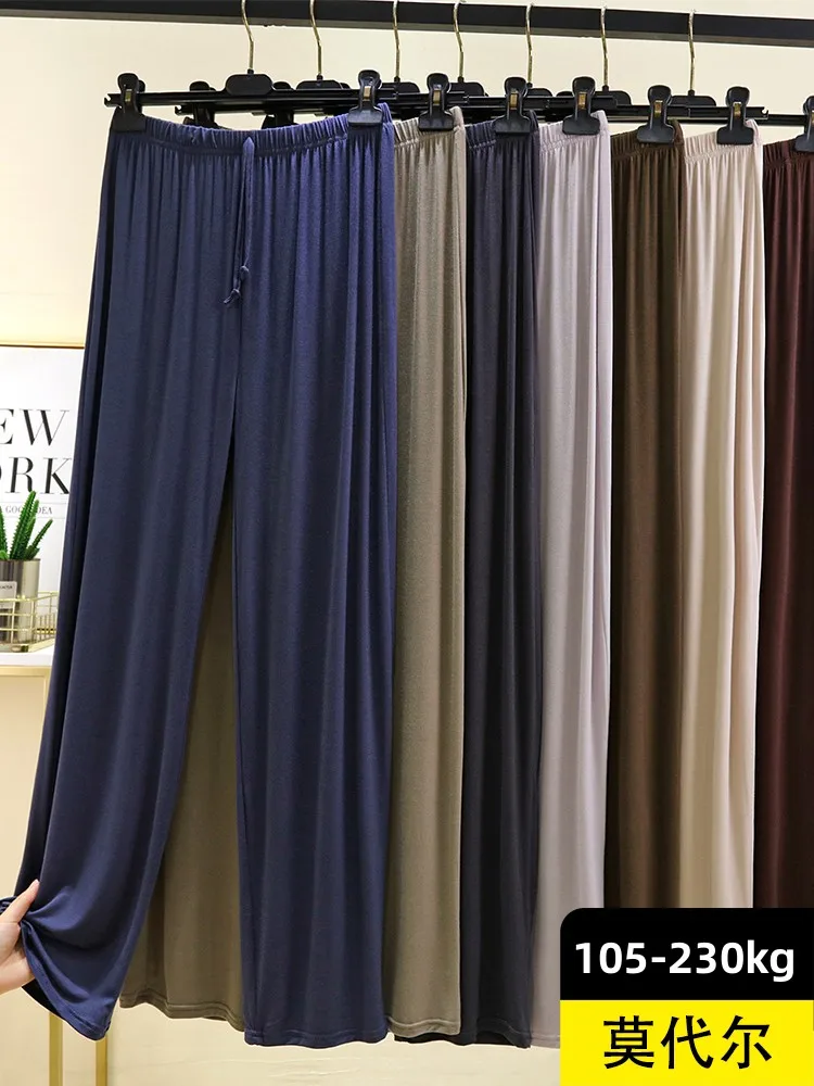 루즈핏 모달 남성 캐주얼 팬츠 얇은 홈웨어/잠옷 큰 사이즈 야외 활동복 롱 팬츠 가을 하이웨이스트