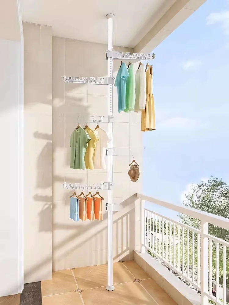 높이 조절 가능한 바닥형 옷 건조대, 침실 가정용 코트 걸이, 탄소강 소재, 발코니 거실용
