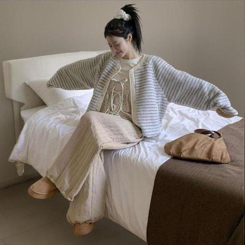 [신상오픈런]여성 양면 자켓 뽀글이 스트라이프 캐주얼 코트