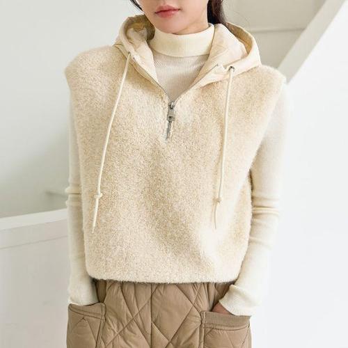 부클 후드 베스트 패딩 뽀글이 집업 니트 조끼