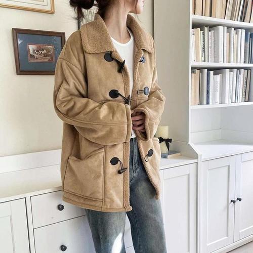 루즈핏양털무스탕 코트 캐주얼 가을 겨울 울 뽀글이 자켓 무스탕자켓 퍼 카멜