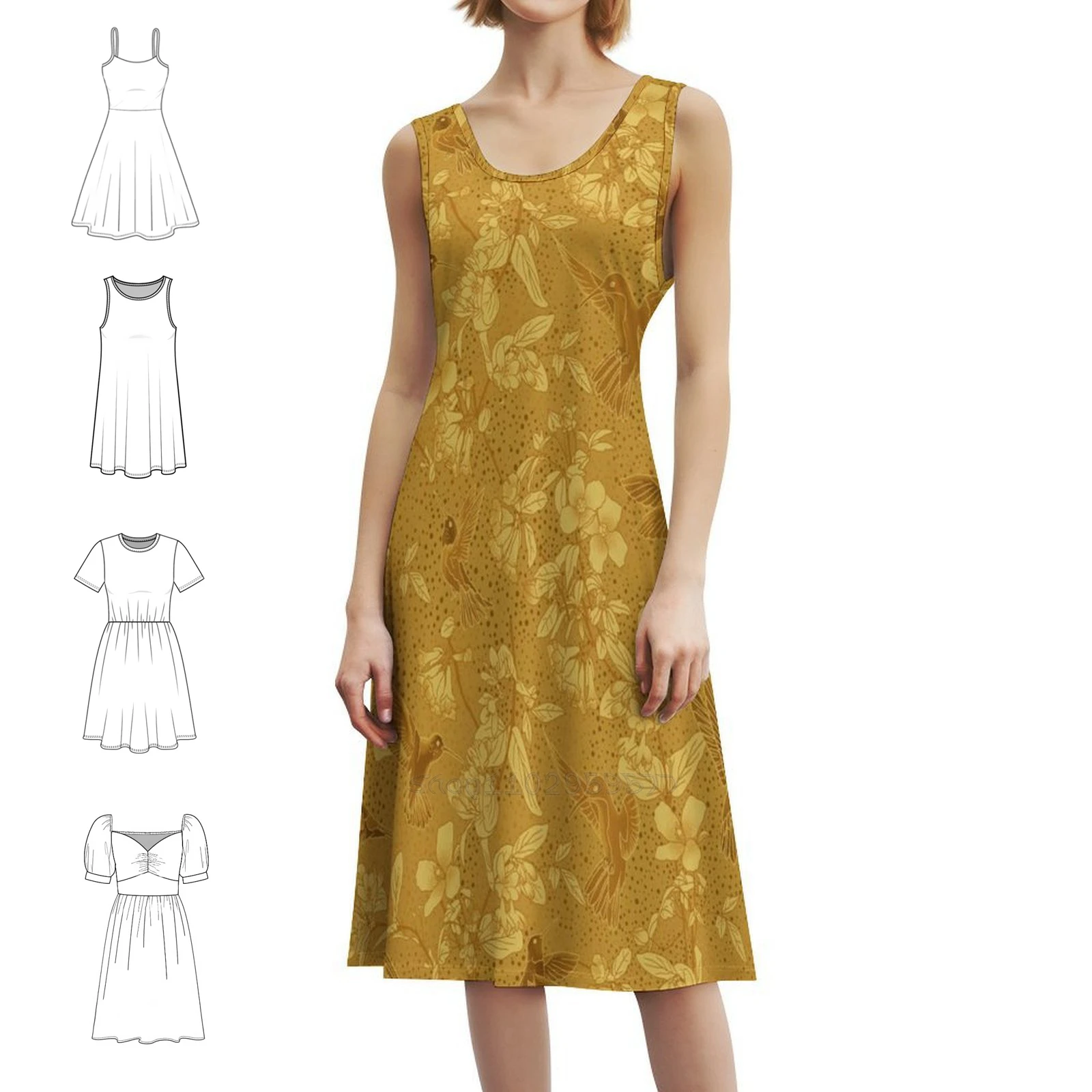 골드 허밍버드 파라다이스 여성용 프레피 스타일 미니 드레스 A라인 루즈핏 캐주얼 데이 드레스 페이스마스크 허밍버드 새