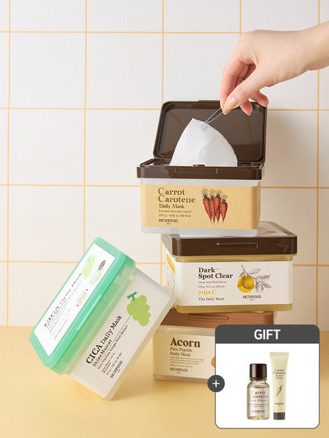 [스킨푸드] [교차/3종] 뽑아쓰는 퀵 데일리 마스크 (당근/유자/에이콘)