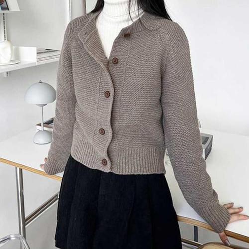 깔끔 꽈배기무늬 단가라 가을 겨울 니트 단추 가디건 사무실 카라 우먼 숏가디건 간절기 여성