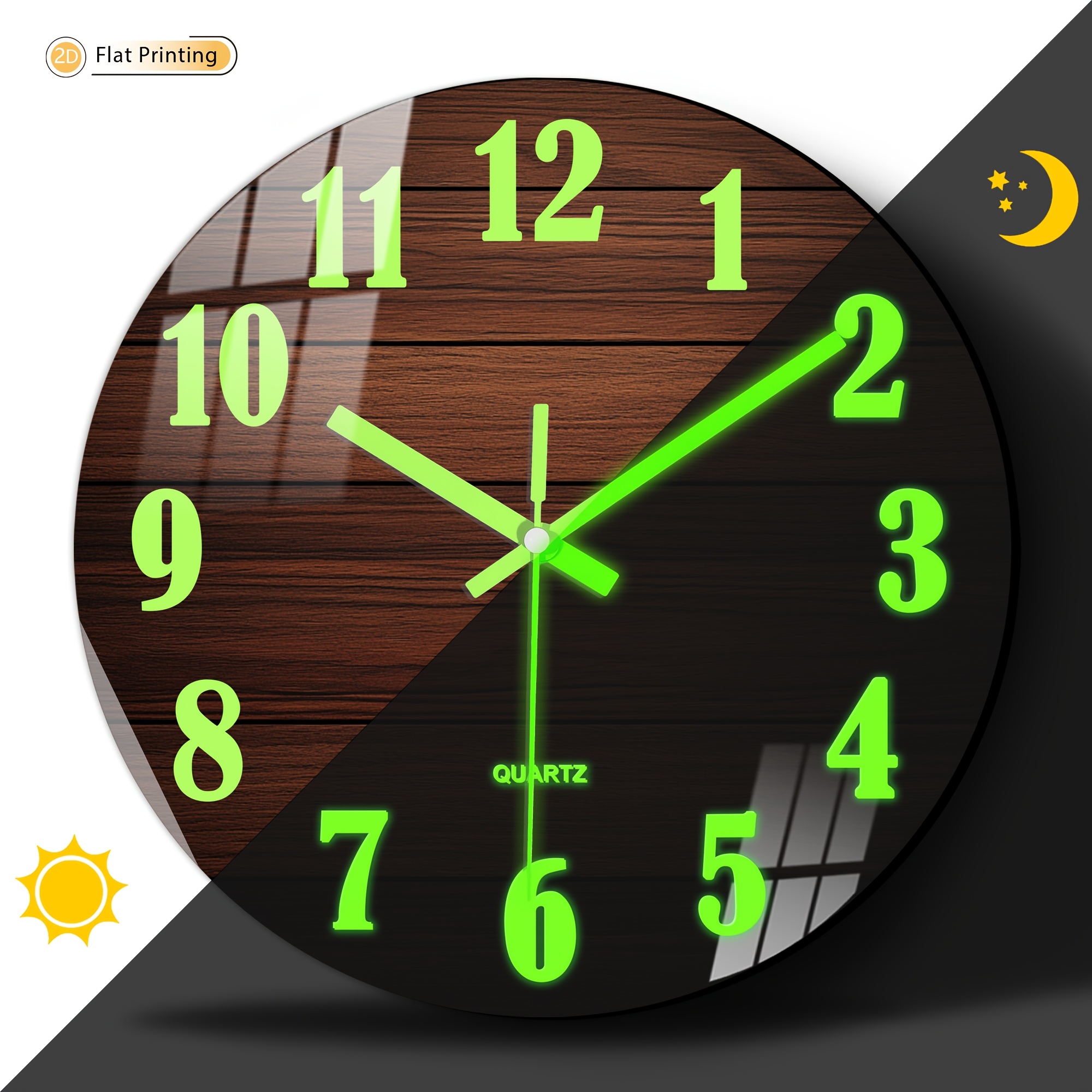 TEMU 1개 판타지 야광 벽시계, 어둡고 거친 나무결 가로 보드 패턴, 강화 유리 필름 무소음 시계, 가정용 배터리 작동 벽시계, 식당, 복도 이상적인 데이트, 형제, 부활절 선물 AA 배터리 작동 (미포함)