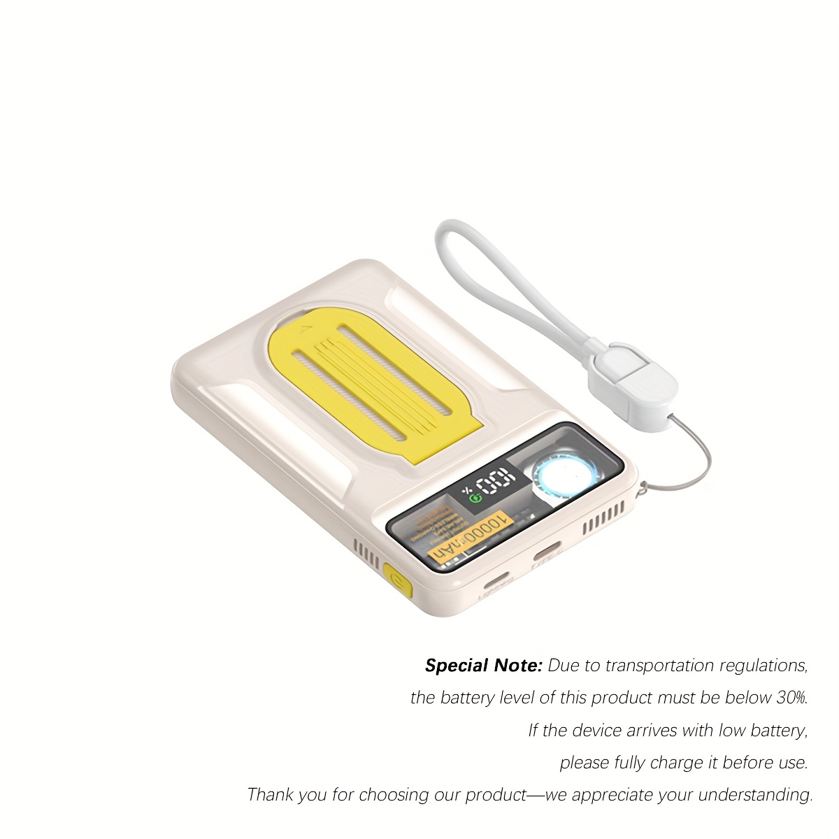 TEMU 10000mAh 자기식 충전 파워뱅크, 15W/20W 고속 충전, 내장형 휴대폰 스탠드 및 냉각 팬 포함, 휴대용 모바일 파워뱅크, USB-C 충전, 야외 활동 및 여행용 컴팩트 디자인, 여행용 충전기, 현대 액세서리, 튼튼한 구조, 고용량 폰 파워뱅크, 파워스테이션, 대용량