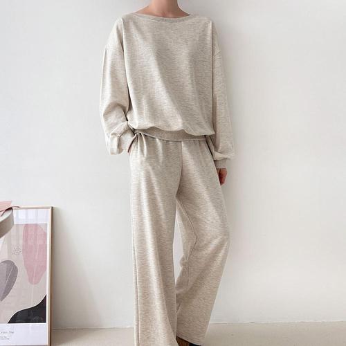 [옷자락] 여자 무지 보트넥맨투맨 코튼 와이드팬츠 가을 세트