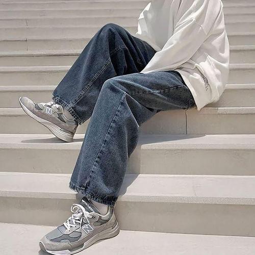 [에이치플러스몰]남성 스트릿 와이드핏 생지 데님 청바지 캐주얼룩