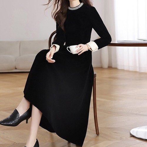 [핑크엘리제]하이넥 페미닌 연말룩 하객룩 샤르망롱원피스