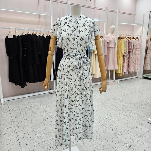 [샤틴]리본넥 말 패턴 옆지퍼 롱 원피스S233C605A_JK