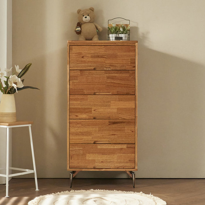 히트가구 [착불배송 상세확인] G411 고무나무 원목 5단 서랍장 600 1color