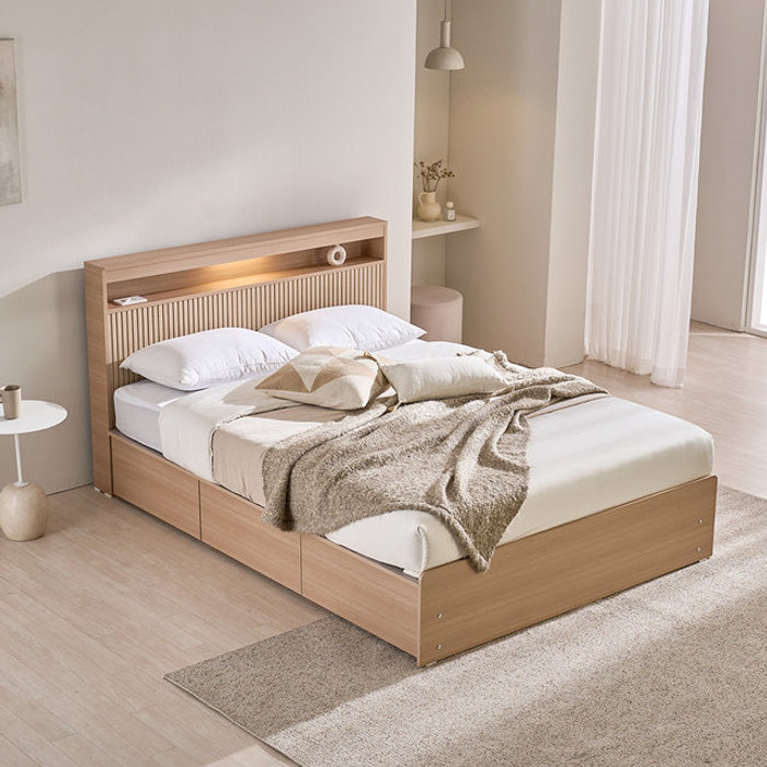 장인가구 [비밀특가] 장인가구 클리브 호텔 평상형 서랍 빅수납 LED 침대 프레임 K (높이 300)+포켓 (주문제작)