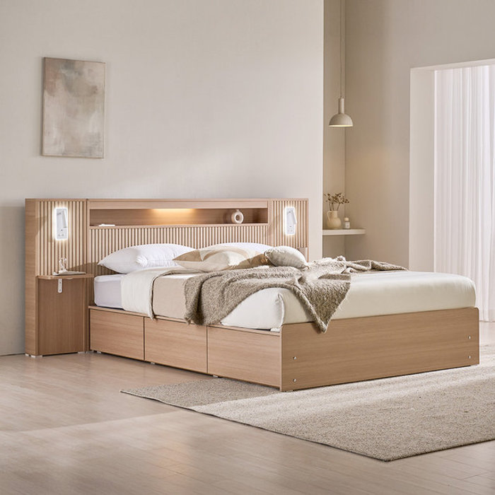 장인가구 [비밀특가] 장인가구 클리브 호텔 평상형 서랍 빅수납 LED 침대 프레임 K (높이 300)+포켓+조명 협탁2 (주문제작)