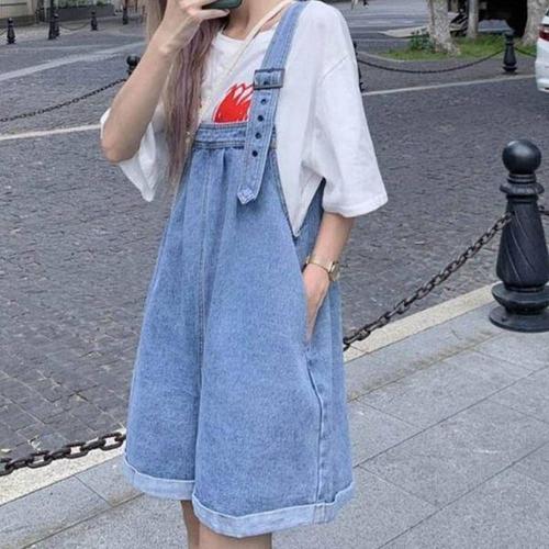 [써니 패션] 여성 학생 오버핏 데님 멜빵 청 반바지