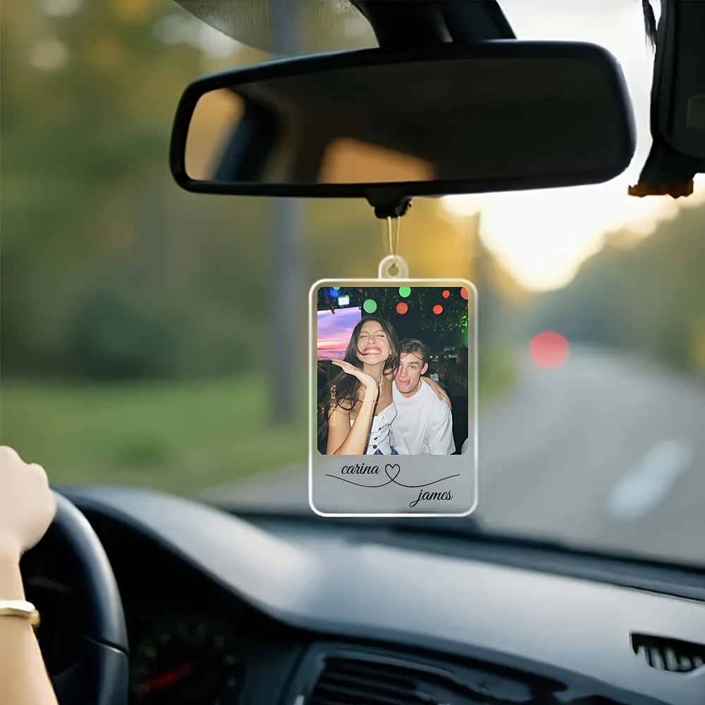 TEMU 2D 평면, 맞춤형 사진 & 이름 차량 거울 걸이 - 사진/텍스트 아크릴 차량 액세서리 (이름 및 사진 추가 가능) - 내구성 있는 후방 거울 장식, 결혼식, 기념일, 선물용 - 간편 설치 차량 내부 장식, 2D 평면