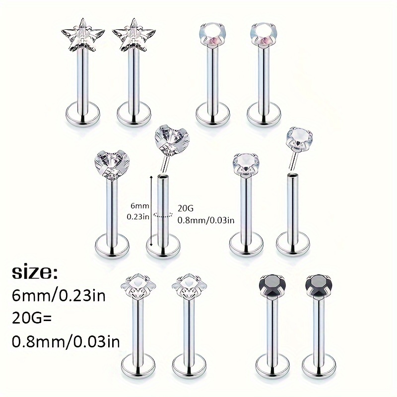 TEMU 12개 20G 18G 16G 무스레드 푸시핏 메두사 피어싱 쥬얼리 트라구스 귀걸이 세트 서지컬 스틸 래브라도 쥬얼리 립 링 스터드 귀걸이 여성 남성 포워드 스파이럴 귀걸이 플랫 백 연골 귀걸이