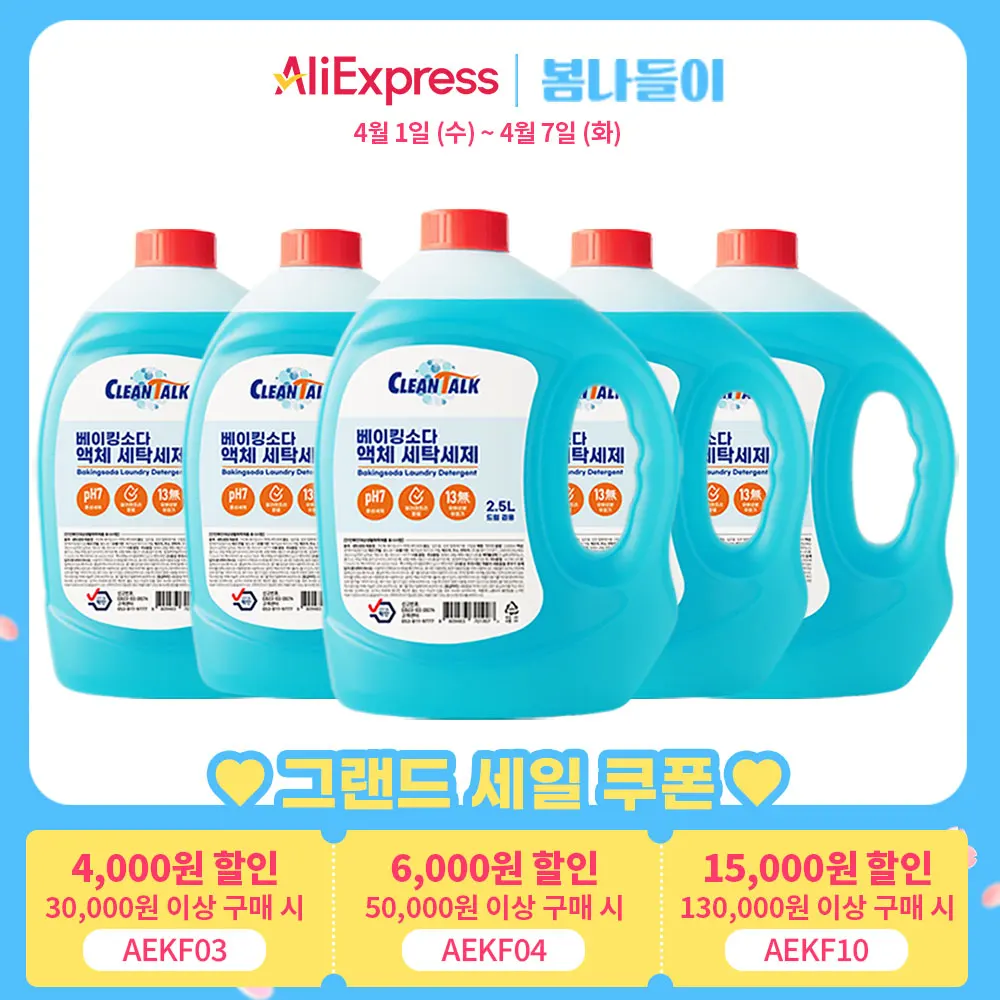 크린톡 베이킹소다 액체 세탁세제 2.5L x 5개