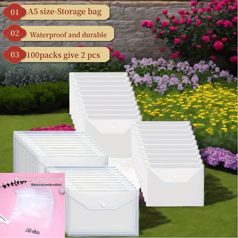 TEMU (무료 2개 증정 100개입) 사무실 금융용 탁상용 영수증 및 서류 분류용 심플 투명 파일백 | A5 사이즈 22x17cm, PP 소재, 스냅 버튼 포함, 문구용 봉투 폴더, 학교, 가정, 사무용품에 적합