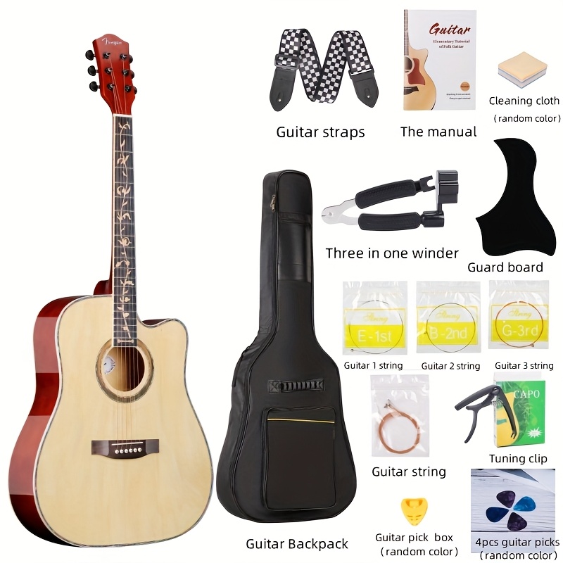 TEMU 41인치 풀 액세서리 세트 + 백팩 포함, 풍부한 사운드를 위한 초보자 및 성인을 위한 민속 목재 기타