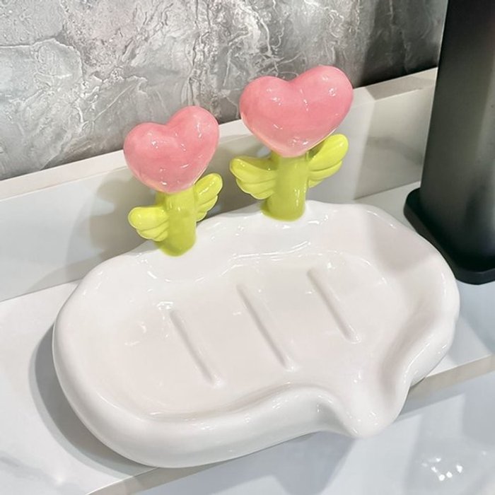엄지척 하트윙세라믹비누받침대욕실세면대비누트레이