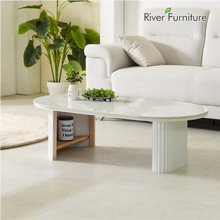 거실 소파테이블 밀크 세라믹 좌식테이블 양타원 트리플