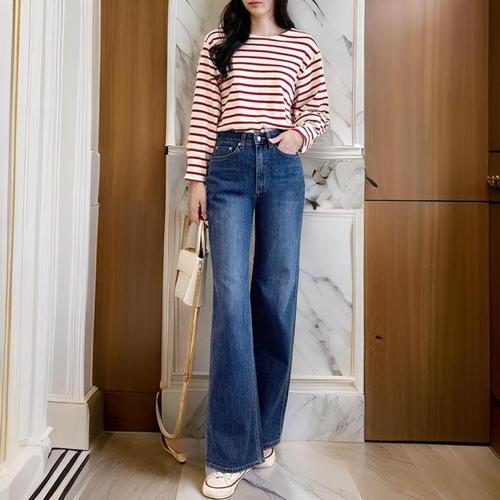 [옷자락] 여성 트렌디 와이드 세미 플레어 청바지