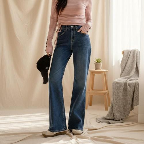[셀럽하우스]플레어 ANJY5512 세미 데일리 하이웨스트 부츠컷 연 청바지