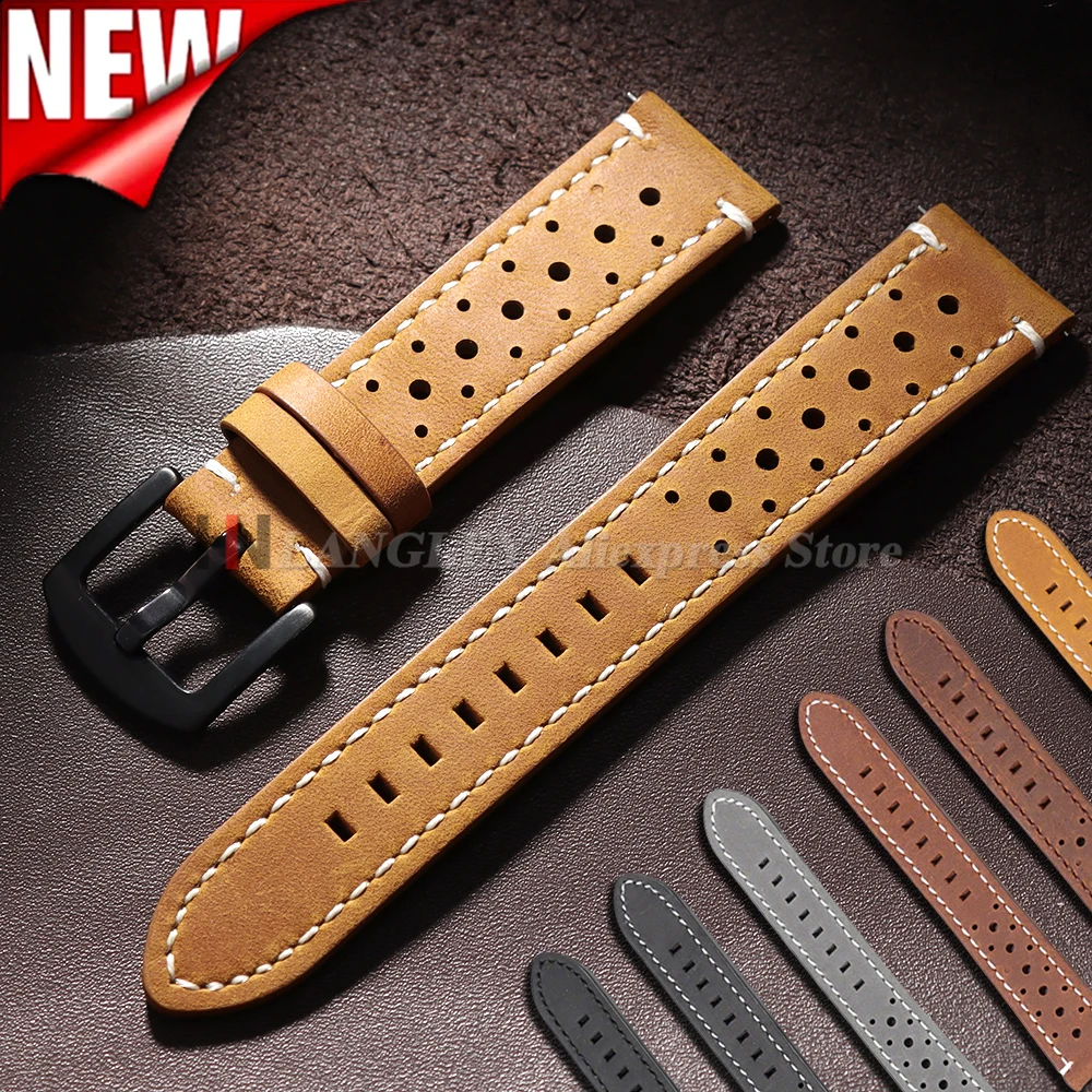 빈티지 오일 왁스 가죽 시계줄 18mm 20mm 22mm 19mm 21mm 24mm 유니버설 스티칭 소가죽 스트랩 오메가 세이코 시계줄용