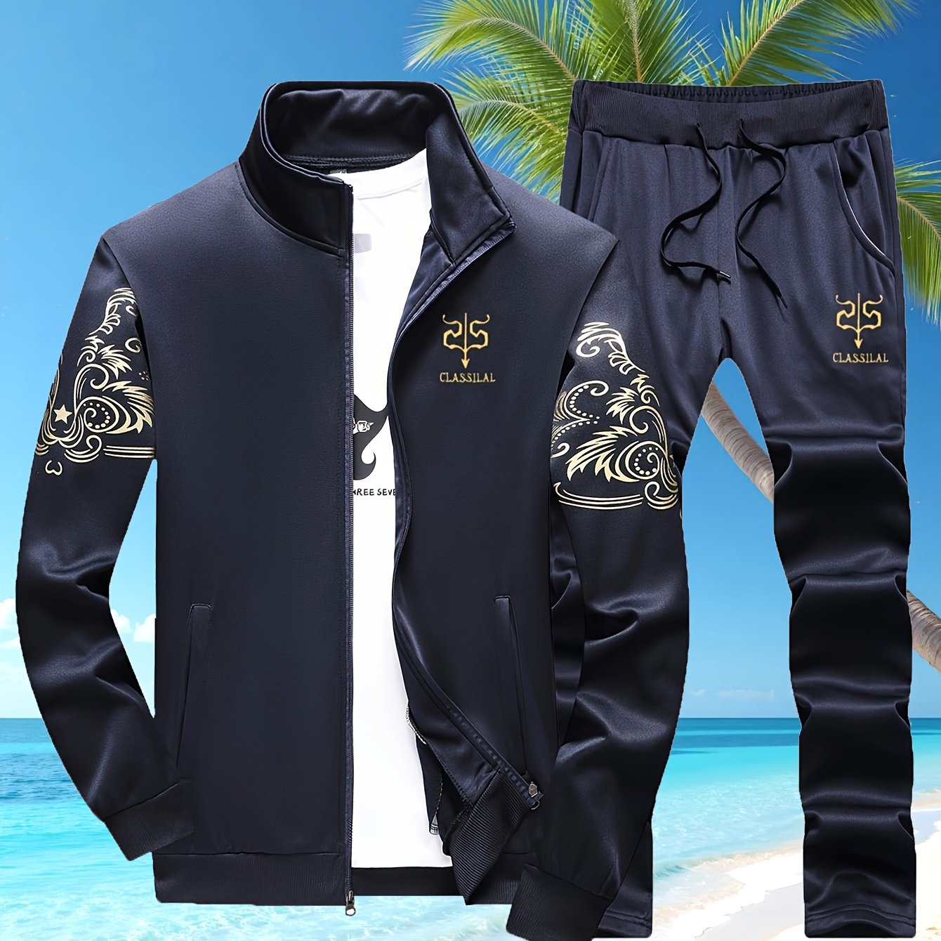 TEMU 봄/가을 스타일 플리스 지퍼업 프린트 가디건 캐주얼 스포츠 투피스 세트