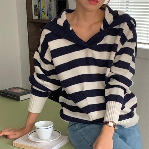 [다잇템]여자 줄무늬 신입생 세일러카라 FW 데일리 니트 (11781335A)