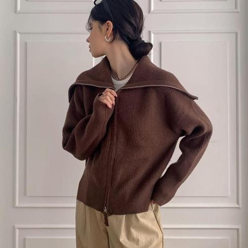 [미라클세븐]여성용 부드러운 울 혼합 세일러 카라 니트 cardigan