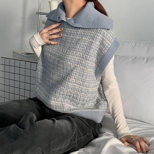 [다잇템]여자 부클니트 세일러카라넥 V넥 FW 니트조끼 (17178102A)