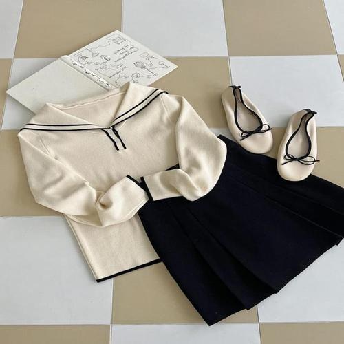 [옷자락]여성 루즈핏 세일러칼라 골지 니트 스웨터