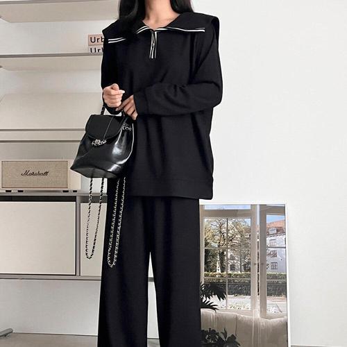 [신세계라이브쇼핑][옷자락] 여성 기모 세일러카라 티셔츠와 와이드 팬츠 세트