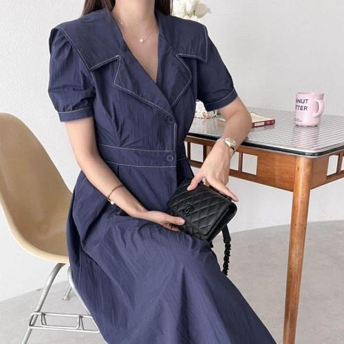 [다잇템][다잇템] 여자 세일러카라 외출룩 맞주름 단추 빅사이즈 롱원피스_17461574_588872