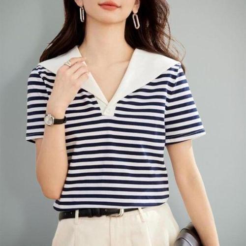 [신상오픈런]여성 스트라이프 세일러 카라 반팔 티셔츠