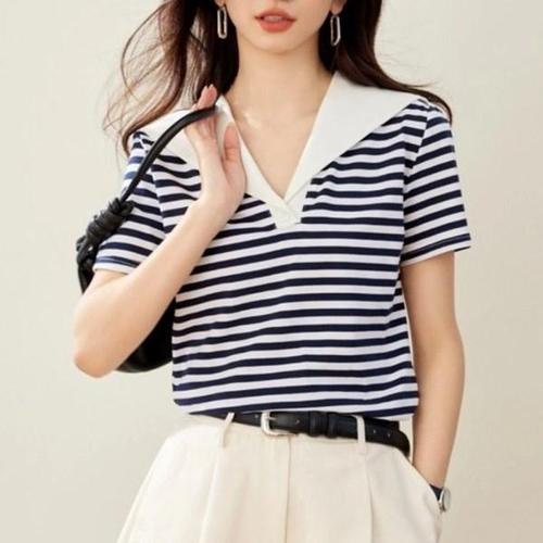 [신상오픈런]여자 스트라이프 세일러 카라넥 반팔 티셔츠