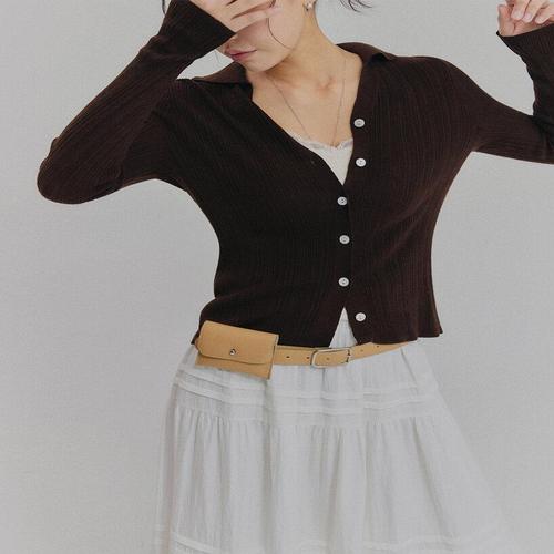 [BNX]스트라이프 카라 배색 자수 가디건 (BX4CD001L0)
