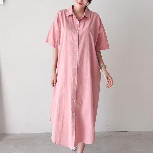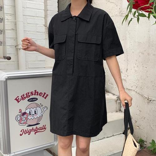 [다잇템]여자 주머니 롱셔츠 반소매 큰사이즈 원피스 (16003056A)