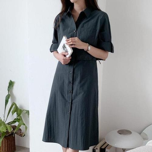더모아상회 여성 셔츠형 롱 맥시 원피스 캐주얼 편한 봄 가을