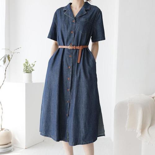 [다잇템]여자 데님셔츠 벨트원피스 단추 롱원피스 (32775298A)