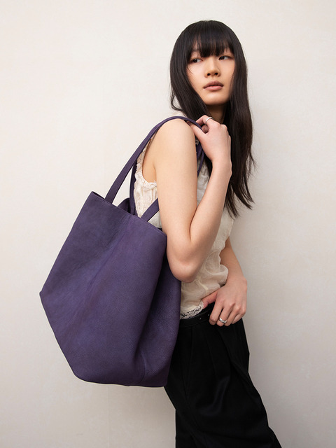 [앤드로스] 소가죽 누벅 쇼퍼백 (퍼플)