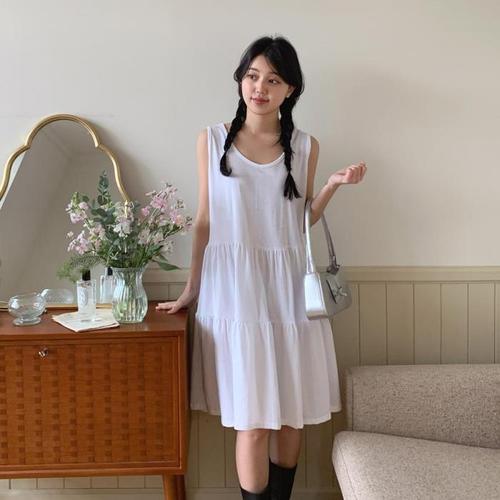 [다잇템]여자 U넥 슬리브리스 소녀룩 2단 페미닌 원피스 (13828153A)