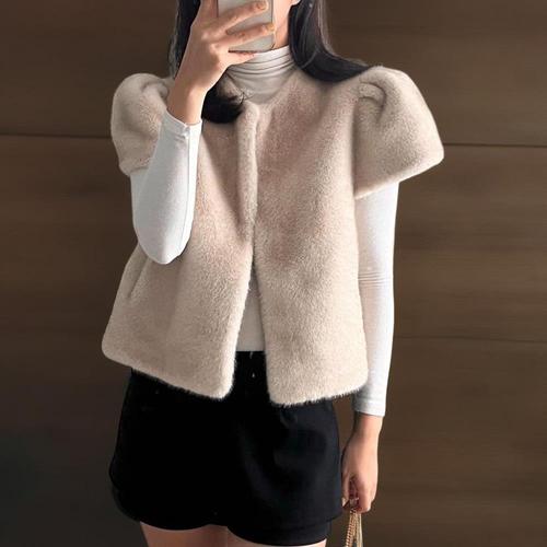 [신상오픈런]여성용 사랑스러운 셔링 소프트퍼 겨울 조끼 캡소매 인조밍크