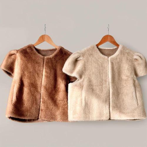 [신상오픈런]여성용 러블리 셔링 소프트퍼 캡소매 겨울 인조밍크 조끼