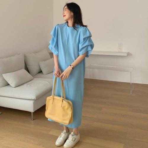 [올리브데올리브] 볼륨소매 뒷리본 셔링 롱원피스 OW5MO424 OW5MO424