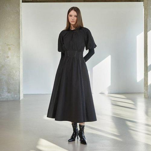 갤러리아_(25겨울) 셔링 퍼프소매 백타이 롱 원피스 (ER4WO261)